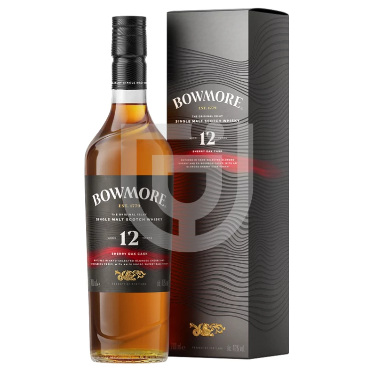 A Bowmore Sherry Oak a gyártó legújabb kollekciója, amelyben a sherry hordós érlelés varázslatos árnyalatival játszik. Az első tétele ennek a gyűjteménynek egy kiváló 12 évig érlelt Islay Single Malt whisky, amely ex-Bourbon és Oloros Sherry hordók mélyén csiszolódott tökéletesre. Majd ezután a párlat átkerül teljes egészében egy Oloroso sherry hordóba így egy kiemelkedően gazdag és érzéki rétegeket adva a párlatnak. Az így kialakult ízvilág tele van piros bogyós gyümölcsökkel, karamellel, vaníliával és lédús barackkal, amit lágyan átjár Islay elegáns tőzegfüstje. A Bowmore 12 Years Sherry Oak Cask Whisky egy gyönyörű kifejezése a sherry hordós érlelésnek, komplex, ízgazdag párlat, bátran emeljük le a polcról/rendeljük meg, biztos választás az Islay whiskyk kedvelőinek!