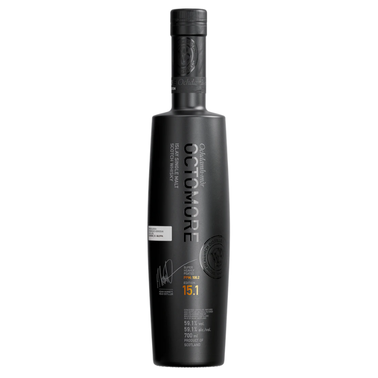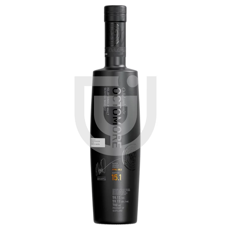 A Bruichladdich Octomore Edition.15.1 Whisky folytatja a sort a világ legfüstösebb whiskyjeinek elkészítésére a maga 108,2 PPM-ével (parts per million, a füstösség mérésére adott érték). Ez a tétel adja a szerkezetét a sorozatnak, az összehasonlítási alap a többi kiadáshoz. 100% skót árpából készülő tétel magas intenzitású tőzegfüstölésen megy át, majd 5 éven át első töltésű bourbon és újra égetett ex-Bourbon hordókban érlelődött, oda figyelve arra, hogy a fából a legtöbb ízt kitudják nyerni. A füstös dominancia mellett olyan tölgyes karakterek is felfedezhetőek, mint a vanília puding lágy édessége és a fűszerek harmóniája. Érdemes pár csepp víz hozzáadása után is megkóstolni a párlatot, még jobban kibontakoznak a füstös ízek és finom tengeri jegyekkel is kiegészül a korty.