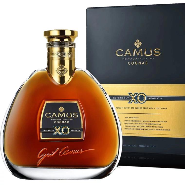 A Camus XO több évnyi gondos és aprólékos munka eredménye. A folyamat a legkiválóbb eaux-de-vie kiválasztásával kezdődik, amelyek meghatározzak a Camus XO főbb jellemvonásait. Egyes összetevők a Borderies ültetvényekről származnak, melyek tovább nemesítik a nedűt. A hűvös pincékben töltött hosszan érési folyamat eredményeként igazán nemes eaux-de-vie születnek. Ezen csodálatos nedűk keverékéből születik meg a kiegyensúlyozott, jól lekerekített, finom és elegáns konyak a Camus XO. A Camus XO színe halvány borostyános, illata rendkívül érett és komplex. Ízében a friss és kandírozott gyümölcsök harmóniáját a méz, a csokoládé, a mandula és a mogyoró karaktere kíséri. Utóíze kellemesen fás, vaníliás jegyekkel tarkított. A Camus XO egy kiváló minőségű konyak, ínyencek számára kötelező darab.