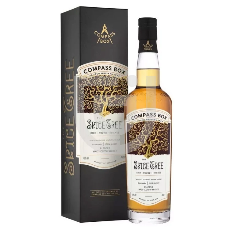 Ez a John Glaser nevéhez köthető innovatív kevert whisky a skót felföldön megszokott módon, 100%-os maláta whisky-ként születik. Az elsődleges érlelés is a hagyományos, amerikai tölgyfahordós módon történik. A különleges ízvilág a másodlagos érlelés eredménye. Ez speciális hordókban történik, amelyet többféle módon és mértékben égetett francia tölgyfából készítenek. Ez a két éves második érlelés adja meg a Compass Box Spice Tree Whiskey átlagosnál sokkal összetettebb ízvilágát. Erre az eljárásra utal az elnevezésben a spice tree (fűszer fa) kifejezés. Gazdag, telt és merész íze alkalmassá teszi étkezés utáni fogyasztásra, akár sajtok kísérőjeként, de kiváló koktélok alapanyagául is.