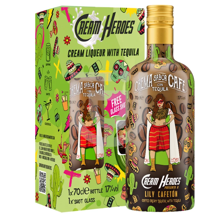 Ha a mexikói kultúráról esik szó, elkerülhetetlen téma a Lucha Libre, az a mexikói eredetű profi pankráció, amelynek megtestesítője volt például Rey Misterio a WWE sztárja is! Rengeteg gyerkőc példaképévé váltak ezek a maszkos „hősök”, akik a spanyol Cream Heroes márka arcaivá is váltak. A csúcs tequila likőr kollekció különböző tételei olyan eszméket képviselnek, amelyekért érdemes küzdeni és ami a mexikói kultúrát képviselik. Cream Heroes Lily Cafetón Tequilalikőr a kitartást, a nőiességet, az elvárásokkal való szembe menést és a női szerepvállalást tükrözi, amelyet Lily Cafetón személyesít meg. Egy olyan szenvedélyes tequila különlegesség került a palackba, amely ötvözi a kávé energikus zamatait, a 100% mexikói tequila pazar jellegével és a krémlikőr lágy vonalvezetésével. A Cream Heroes megalkotta napjaink legizgalmasabb tequilás kávélikőrjét, egy olyan üzenettel, amely a szebbik nemet helyezi előtérbe. Egyszerűen elképesztő, ami ebbe színes palackba belekerült, a tejeskávé ízei bármely kóstolót azonnal rabul ejtenek! De nem csak önmagában okoz gyönyört ez az ital, koktélokban való munkálkodása sem hagy kivetni valót maga után!