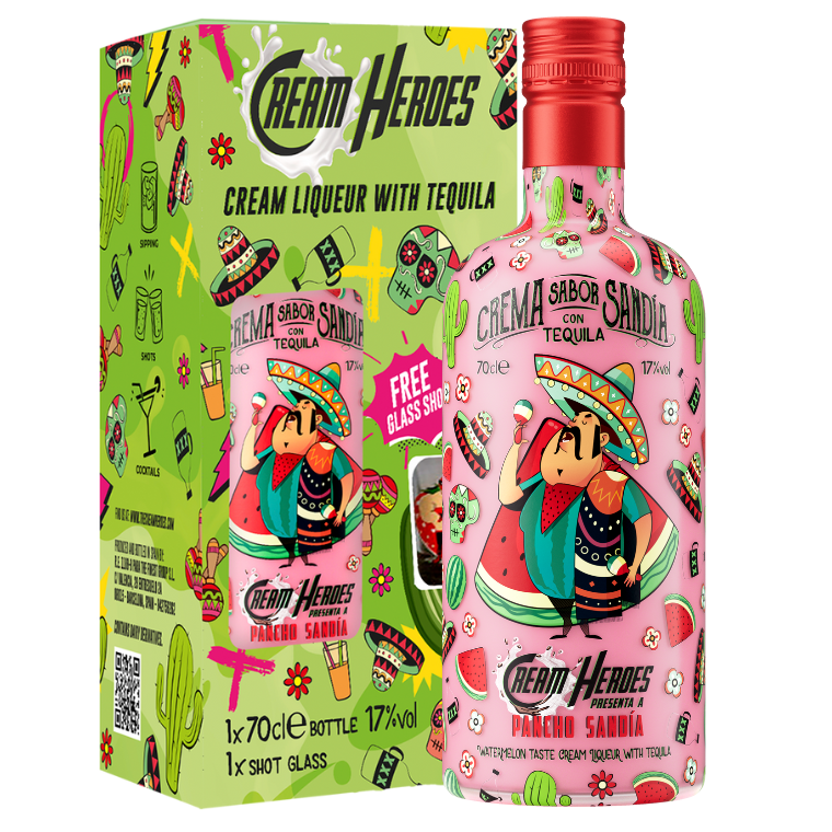 Ha a mexikói kultúráról esik szó, elkerülhetetlen téma a Lucha Libre, az a mexikói eredetű profi pankráció, amelynek megtestesítője volt például Rey Misterio a WWE sztárja is! Rengeteg gyerkőc példaképévé váltak ezek a maszkos „hősök”, akik a spanyol Cream Heroes márka arcaivá is váltak. A csúcs tequila likőr kollekció különböző tételei olyan eszméket képviselnek, amelyekért érdemes küzdeni és ami a mexikói kultúrát képviselik. A Cream Heroes Pancho Sandia Cream Tequilalikőr az élet élvezetét képviseli és azt, hogy azt csináljuk, amit szeretünk! Pancho Sandia az életöröm megtestesítője, aki örömzenéjével rázza fel a hangulatot! Az ital, ami az ö nevét képviseli az pedig a magyarok kedvenc gyümölcsével a görögdinnye ízeivel fokozza az élvezeteket. Ez a 100% mexikói tequila alapú krémlikőr valami egészen fantasztikus ízekkel kényeztet, valami mesterien fonódik össze a dinnye, a tequilával, egy kis tuttifruttis csavarral megspékelve pedig még magasabb fokon pörög ez az ízbomba! Édes, kiegyensúlyozott ízvilág, rengeteg dinnyével és további tutti fruttis elevenséggel megáldva. Rendkívüli ízélmény!