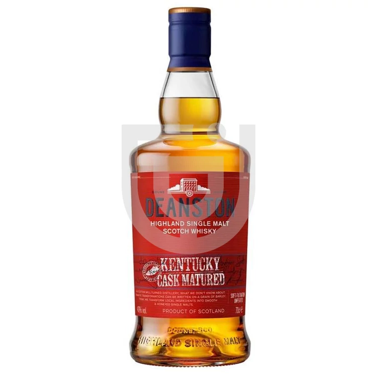 A Deanston a 19. század végén gyapotgyárként vívott ki magának ragyogó hírnevet, az 1960-as években viszont valósággal berobbant a whisky világába. A skót Highland régió egyik legfinomabb whiskyje rendre új változatokkal színesíti a kínálatát. Így került a boltok polcaira a fehérarany színben tündöklő Deanston Kentucky Cask Matured Whisky. A Deanston Kentucky hordóban érlelt változata megmutatja, hogyan hangolja újra egy Bourbon hordó a Deanstontól megszokott klasszikus Highland-whisky aromakarakterét!