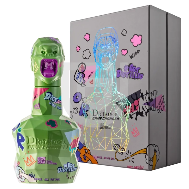 A Dictador már sokszor megmutatta, hogy mennyire a rumkészítés élvonalába tartozik, és ezt most újból bizonyította a Dictador Game Changerrel. Ez a kiadás a Dictador legkiválóbb rumjainak keverékéből született, amelyek minden összetevőjét gondos odafigyeléssel, kézzel válogatták össze – így született meg egy olyan prémium tétel, amelyet az ínyenc rumrajongók is nagyra értékelnek. Az ital alapját egy igen ritka alapanyag, a szűz cukornádméz adja; ez természetes édességgel és komplexitással ruházza fel az italt – olyan jegyekkel, amelyek a melaszból készült rumokban nem jellemzők. Ehhez a blendhez használt hordókat 1999 és 2019 között töltötték meg, így ez nem csupán egy különleges rum, hanem – ahogy a márka is fogalmazott – egy „folyékony időkapszula”, amelyet a részletekig finomítottak. Minden cseppje hűen tükrözi a Parra család elkötelezettségét és szakmai szenvedélyét a rumkészítés iránt. Hernan Parra, a család harmadik generációs mesterkeverője, kivételes érzékkel alkotja meg ezeket a rumokat; tapasztalata és szakértelme minden egyes palackban visszaköszön. Különlegessége még ennek a kiadásnak, hogy lepárlás után a Karib-tenger partján pihentetik, amely tovább fokozza az ital egyediségét, a sós tengeri jegyek árnyalatnyi mélységgel gazdagítják az ízvilágát. A Dictador Game Changer a minőség és a kifinomultság szimbóluma, amit palackjának és díszdobozának igényes kialakítása is megerősít. Ezt sem bízták a véletlenre: a világhírű művészt, Richard Orlinskit kérték fel, hogy tervezze meg az ital dizájnját – ami méltón tükrözi a benne rejlő tartalom karakterét. Több különböző színváltozatban álmodta meg a Dictador Game Changer palackját, amelyet egy elegáns díszdoboz óv – megőrizve ezt a különleges italt teljes esztétikai értékében. A Dictador Game Changer exkluzivitását emeli, hogy az ital nagyon limitált mennyiségben került piacra, így jobb mielőbb beszerezni, ha kollekciónkba szeretnénk tudni ezt a ritka és kivételes kolumbiai rumot.