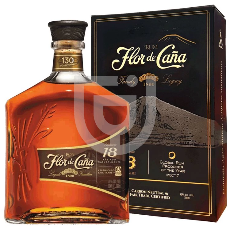 Ez a lenyűgöző, 18 éves rum a Flor de Cana »ultra prémium » sorozatának tagja. A Slow Aged módon, 18 évig érlelt rum ragyogó, borostyán sárga színe szinte ragyog a palackban. A testes, gazdag, döbbenetesen összetett ízvilággal bíró rum sima és kifinomult. A majd két évtized alatt olyan jegyeket olyan kifinomultságot ért el a tölgy hordókban, amely minden rumkedvelő szívét meghódítja az első korty után.