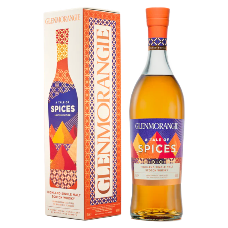 A Glenmorangie A Tale of Spices egy különleges, limitált kiadású Highland single malt whisky, amelyet Dr. Bill Lumsden a nyüzsgő fűszerpiacok illatai és színei ihletésére alkotott meg: a klasszikus, narancsos–vaníliás Glenmorangie-alapra egy egész fűszeruniverzum épül rá. A lepárló ikonikus, magas rézüstjeiben készült párlat először bourbonhordókban érlelődik, majd marokkói vörösboros hordókban, Pedro Ximénez sherryhordókban, új pörkölt tölgyben és shaved–toasted–recharred vörösboros hordókban kap további mélységet, ritkán látott komplexitást adva ennek a fűszeres skót whiskynek. A 46%-os, nem hűtve szűrt Glenmorangie A Tale of Spices egyszerre édeskésen krémes és vibrálóan fűszeres: a virágos, parfümösebb réteg – rózsa, jázmin, orgona, szegfű – finom átmenettel olvad össze a kömény, sáfrány, szerecsendió, gyömbér, chili és ánizs egzotikus, keleti hangulatú fűszerkavalkádjával, miközben a háttérben édes tölgy, gesztenye és finom sherrys jegyek húzódnak meg. A kortyban eleinte gyömbér, fekete bors és mustármag hoz izgalmas, „pezsgő” fűszerességet, amelyet mentás vajkaramella, nádcukor, cukrozott mandula és egy friss, eukaliptuszos felhang kerekít le, a lecsengésben pedig szegfűszeges, bőrös, borsmentás, hosszan vibráló utóíz zárja az élményt. Ez a Glenmorangie single malt ideális választás mindazoknak, akik a Highland whisky világán belül valami játékos, kreatív, mégis elegánsan felépített, fűszerpiac-hangulatú, prémium limitált kiadást keresnek.
