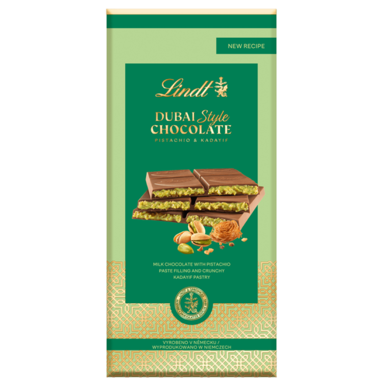 A kiváló Lindt tejcsokoládé lágy, krémes töltelékkel párosul, amely 45%-ban pisztáciát és ropogós kadaifot tartalmaz, és páratlan ízélményt nyújt. Bár nem kézzel készül, a Lindt Dubai stílusú csokoládé kiemelkedik a Lindt csokoládé utánozhatatlan minőségével és új, elegáns dizájnjával.
