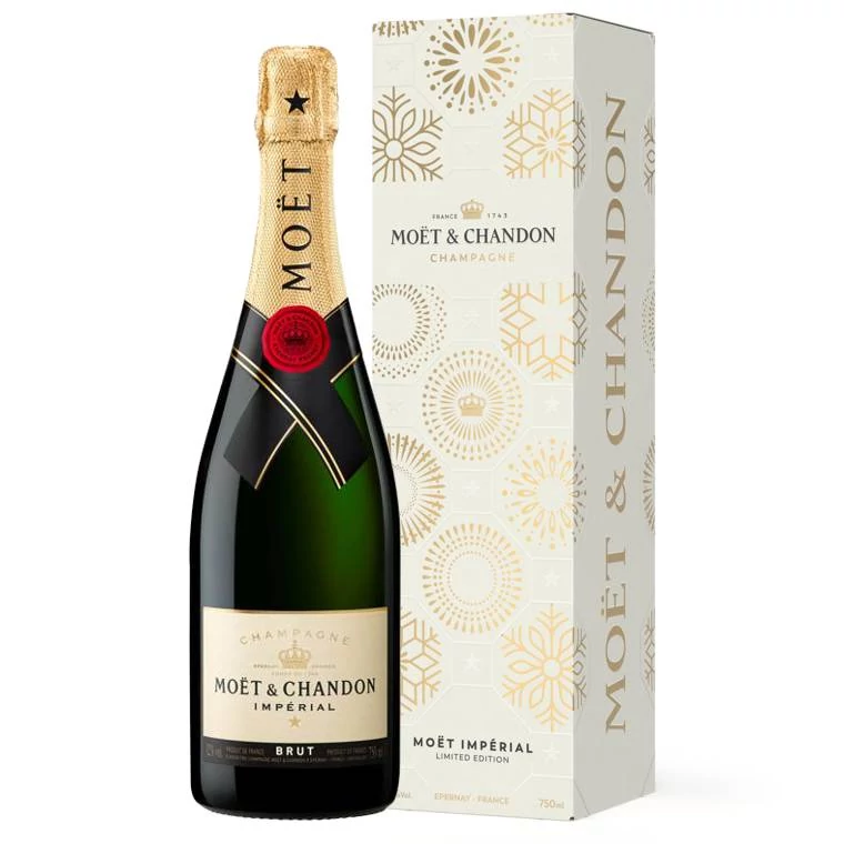 Limitált kiadású Moët Impérial karácsonyi különkiadású díszdobozban.