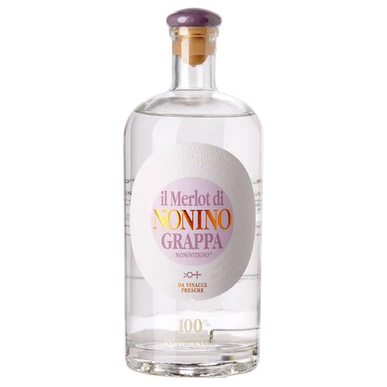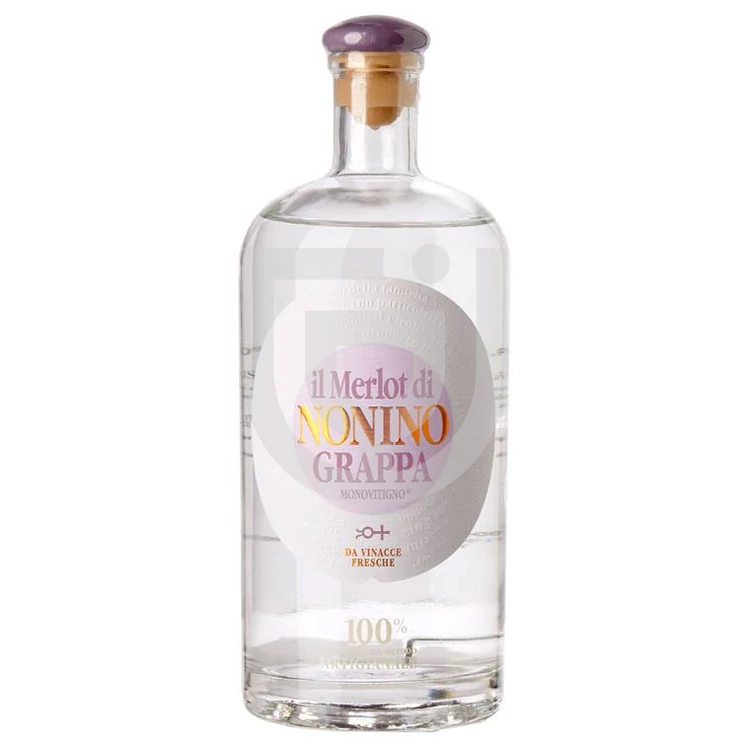 1897-ben Orazino Nonino alapított grappavállalatot az olasz Fruiuli-Venezia Guiulia régióban. Ez olyan pompásan sikerült, hogy korábban sosem látott presztízst vívott ki az olaszok nemzeti italának, a grappának! Később utóda, Benito Nonino és neje, Giannola három lányukkal, Cristinával, Antonellával és Elisabettával vágott bele a grappa-bizniszbe. Sikerült egy egészen egyedülálló minőséget prezentálni a szenvedélyes grappás ízek kedvelőinek. A kezdetektől a minőség és az innováció iránti vágy vezérli ezt a jól működő családi vállalkozást. A Nonino sikerére jellemző, hogy bemutatták a világ első szőlőültetvényről származó, egyetlen specifikus szőlőfajtából desztillált grappáját. Italuk forradalmasította az iparágat. A sikert követően egyre több, egyedülállóan intenzív ízkomponensekkel rendelkező desztillátumot vezetettek be, a rajongók legnagobb örömére. Nem véletlen, hogy a Nonino a grappára koncentrál. Ez Észak-Olaszoroszág legrégibb tradicionális szeszfajátja. Aromakarakterének alapja a szőlő törköly része, ennek a lepárlásából származik. Benito és Giannola Nonino a Movotigno Nonino-val alkották meg a cég első grappáját a Picolit szőlő törkölyének a lepárlásával. A Nonino által készített grappa annyira grandiózusra sikeredett, hogy innentől kezdve más olasz és külföldi lepárlók is a Nonino grappakészítési eljárást követik mintaként. A Nonino Merlot Grappája a Merlot szőlő törkölyéből alakítja ki a maga fejedelmi aromakarakterét. A törkölyt mindig friss állapotban gyűjtik, majd rozsdamentes acéltartályokban ellenőrzött hőmérsékleten erjesztik. Hagyományos steam stillekben desztillálják, aztán meglehetősen hosszú ideig, 6 hónapig érlelik, hogy kibontakoztassák a szőlő törkölyében rejlő ízek sokaságát. A grappa tiszta, lekerekített gyümölcsös jegyzetei a kivételesen finom Merlot szőlőnek köszönhetőek! A Nonino Merlot Grappa szemet gyönyörködtető palackokban kerül a boltok polcaira, amelyek jelentős részét kézzel készítik. A Merlot Grappát napjainkban is mindig más méretű barrique hordóban érlelik a vállalat pincéjében, és 100%-osan kézműves eljárással desztillálják.