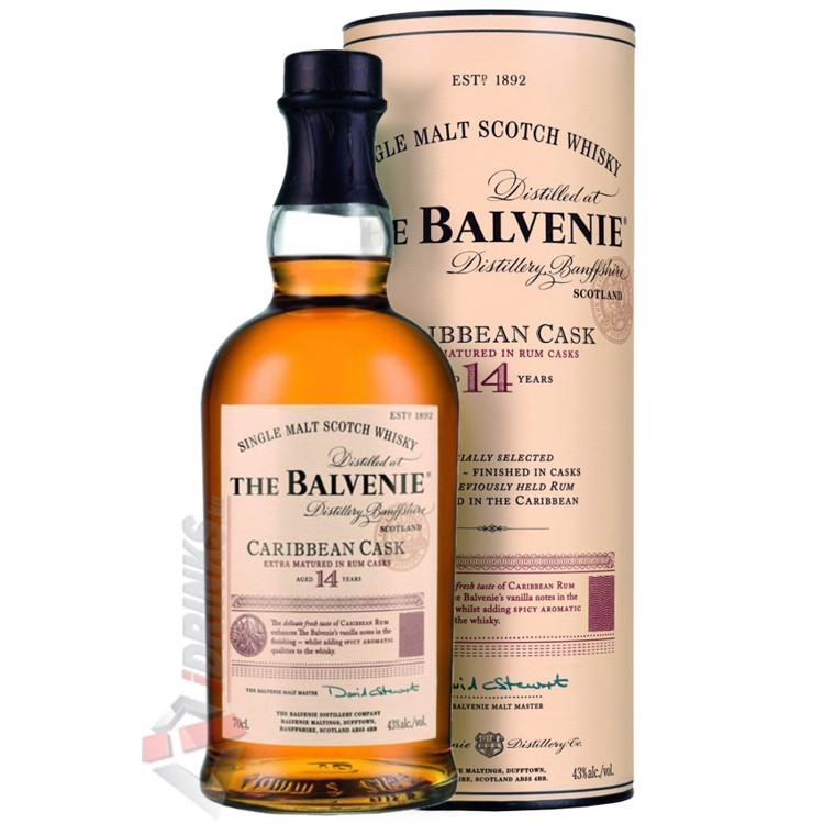 Mi történik, ha a Balvenie-t a hagyományos tölgyfahordós érlelés után karibi rumos hordókba öntik, és a mézes íz az egzotikus, gyümölcsös ízektől valósággal újjászületik? Erre a kérdésre ad választ a 14 éves karibi hordós Balvenie.