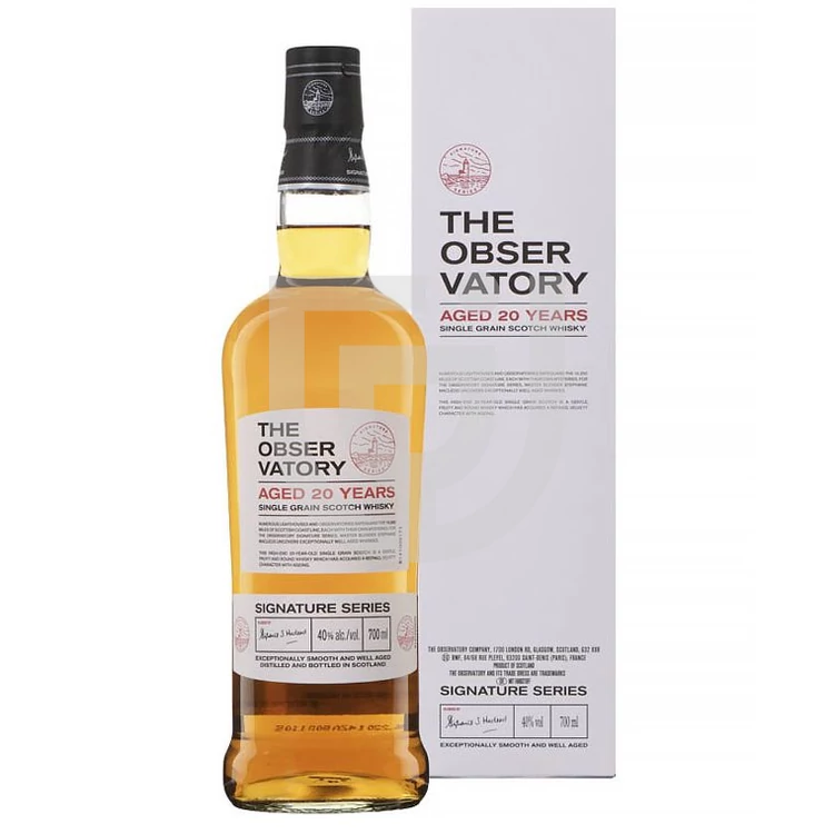 A gabonawhiskynek igen jót tesz a hosszú ideig tartó érlelés! A Bourbon és Sherry hordós érlelés hatására kibontakozik a párlat bársonyosan lágy lekerekítettsége. Mindez egy komplex és könnyen iható whiskyvé varázsolja a The Observatory 20 Years Single Grain Whisky.